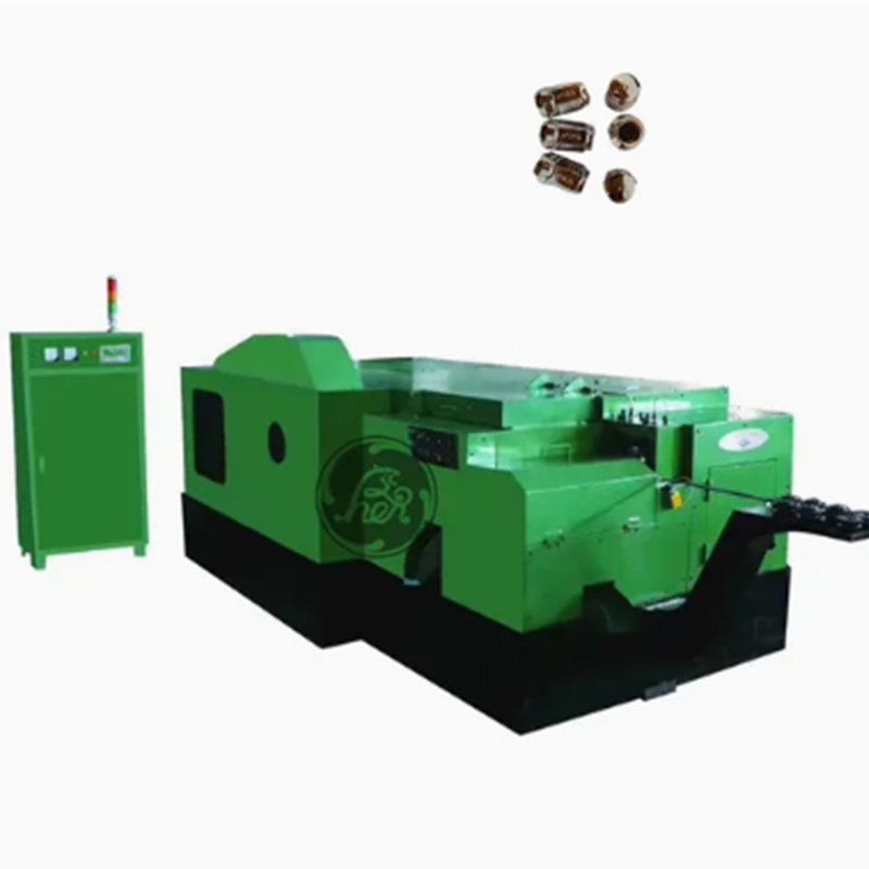 6-stacyjna maszyna do formowania nakrętek wykorzystuje sześć kolejnych stanowisk do wytłaczania na zimno, aby stopniowo przekształcać metalowy drut w półfabrykat nakrętki. Formy na każdym stanowisku pracy są niezależne. Jeśli jedna forma ulegnie uszkodzeniu, po prostu wymień tę, a nie cały zestaw. Może to zaoszczędzić dużo pieniędzy na formach.