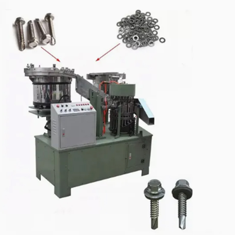 Maszyna do montażu podkładek śrubowych ze stali węglowej może obsługiwać różne typy śrub i podkładek ze stali węglowej. Można obsługiwać podkładki płaskie, podkładki zabezpieczające lub podkładki uszczelniające, zmieniając narzędzie podające. W urządzeniu zastosowano misy wibracyjne do dokładnego pozycjonowania części. Tory prowadzą śruby i podkładki ze stali węglowej do punktów montażowych. Następnie ramię mechaniczne za każdym razem równomiernie dociska podkładki do gwintów.